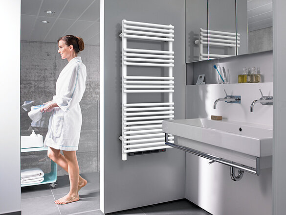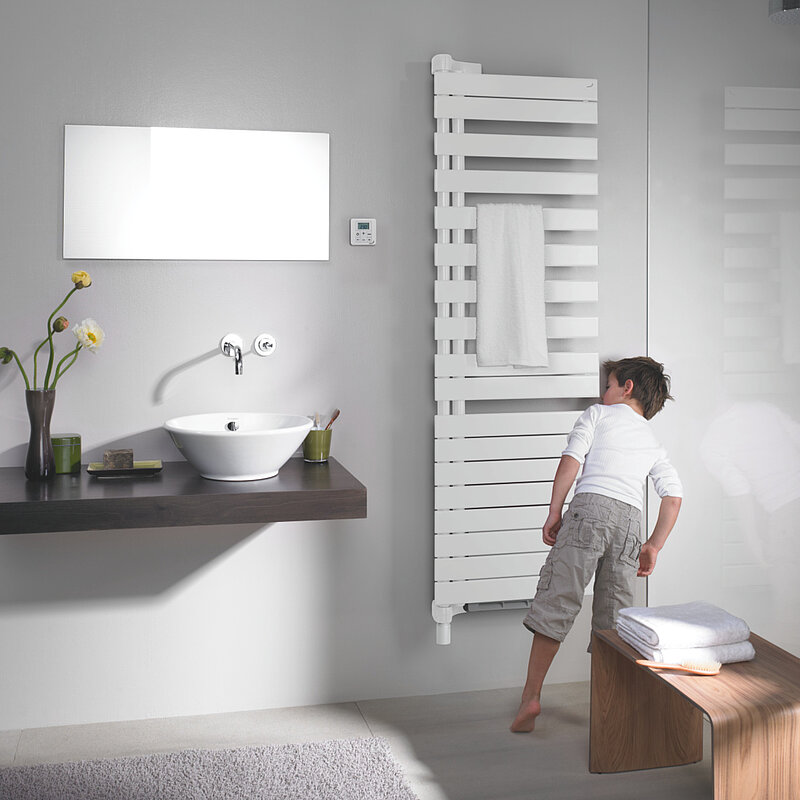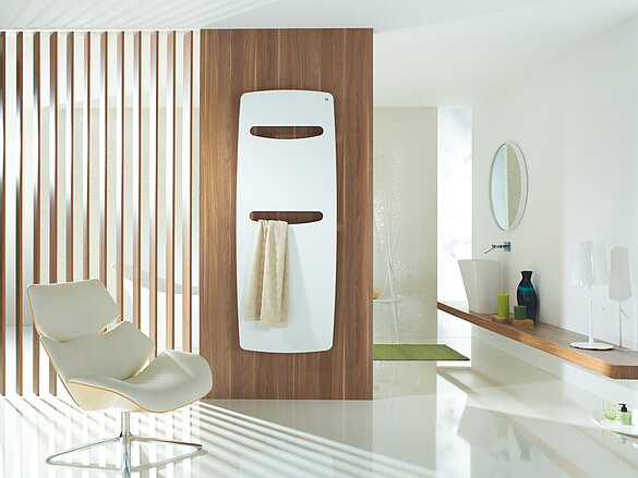 Der mehrfach ausgezeichnete Bad-Heizkörper Zehnder Vitalo bietet eine sehr schnelle und energieeffiziente Wärmeversorgung. In der Elektroversion wird ein Heizkabel in die Grafitlage des Heizkörpers eingebettet. Der Strom wird direkt in Wärme umgewandelt und an die Heizkörperfront abgegeben.