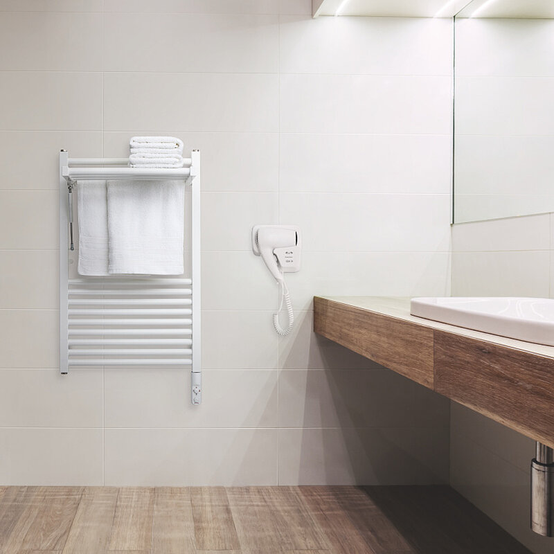 Der Elektroheizkörper funktioniert im Schwerkraftbetrieb. Aus diesem Grunde nimmt die Oberflächentemperatur des Heizkörpers von oben nach unten kontinuierlich ab. Ganz unten bleibt er kalt. Heizkörper und Leistung der Elektropatrone sind genau aufeinander abgestimmt. Die Wärmeleistung ist somit immer gewährleistet.