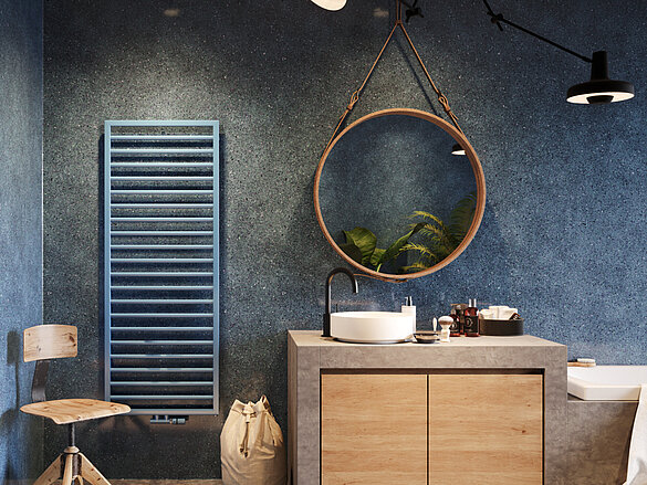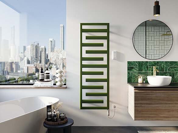 Design-Heizkörper für das Bad gibt es rein elektrisch, aber auch mit Warmwasseranschluss an das Heizsystem.