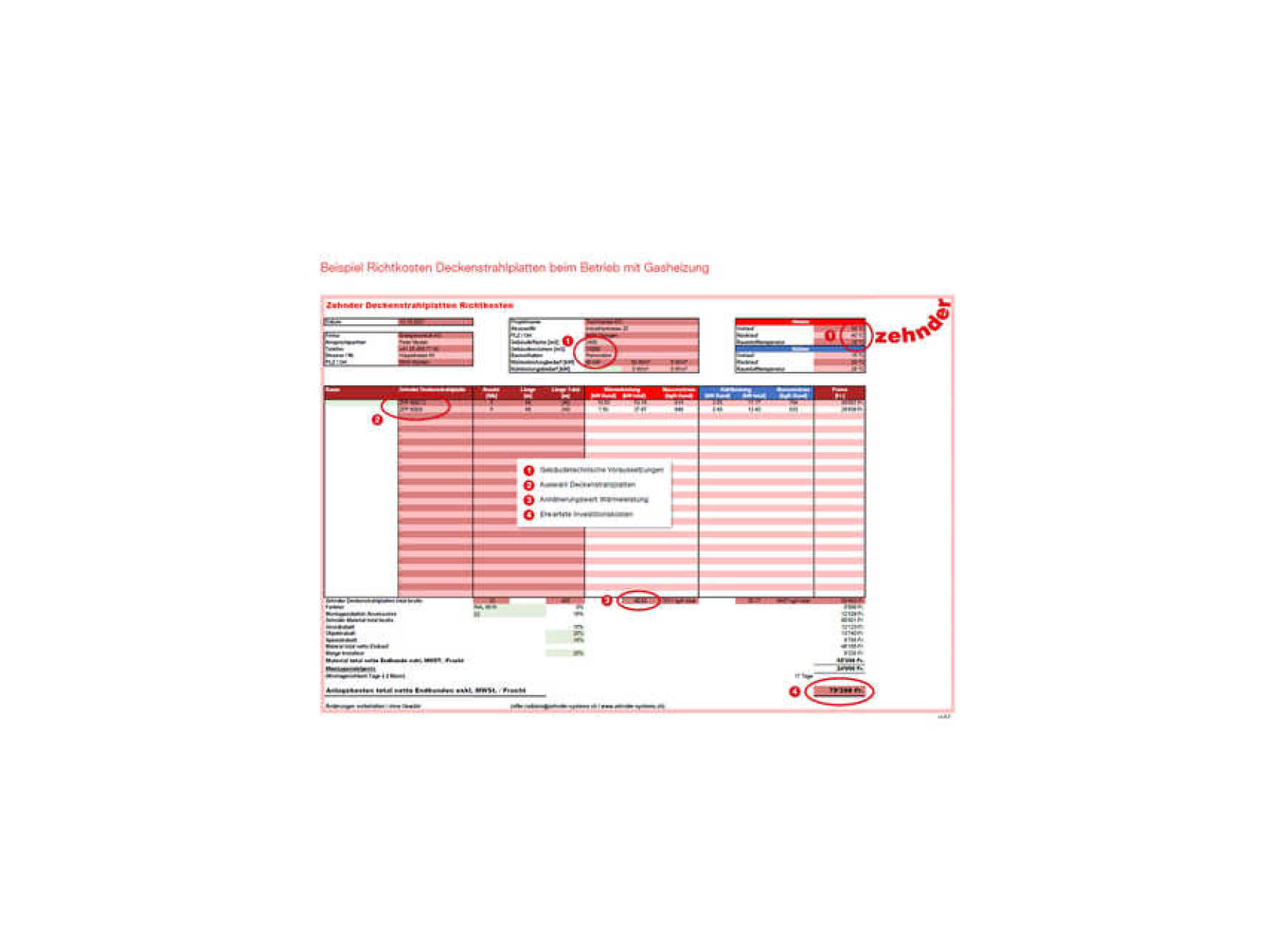 Erzeugen Sie schnell eine vernünftige Einschätzung Ihres Projekts mit dem Planungs- und Kostenberechnungsprogramm für Deckenstrahlplatten: Zehnder Richtkosten-Tool.