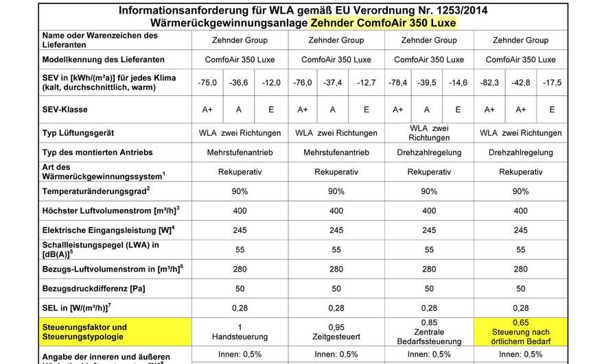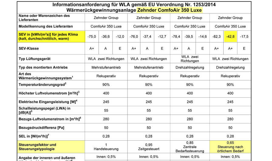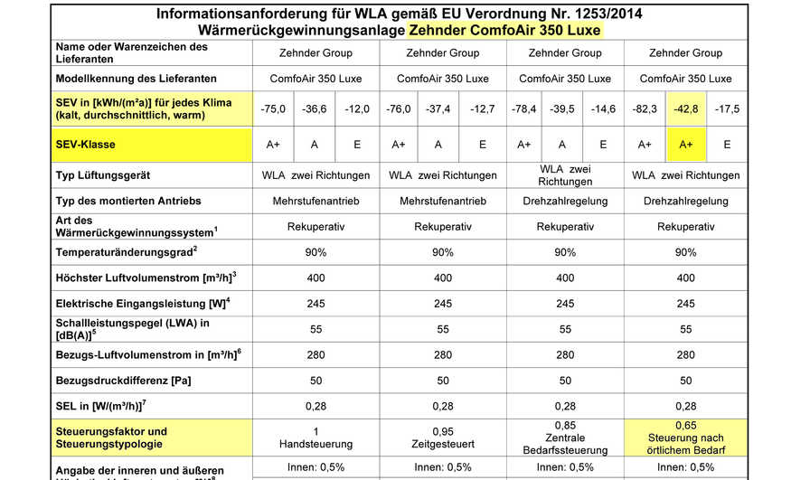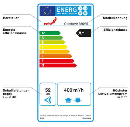 Das Label für Lüftungsgeräte ist ab 1. August 2016 für die Schweiz obligatorisch und damit werden die Anforderungen an Lüftungsanlagen vorgeschrieben. Für Zehnder ändert im Grund nichts, denn alle Produkte weisen sehr gute Werte auf und erfüllen bereits die Anforderungen.