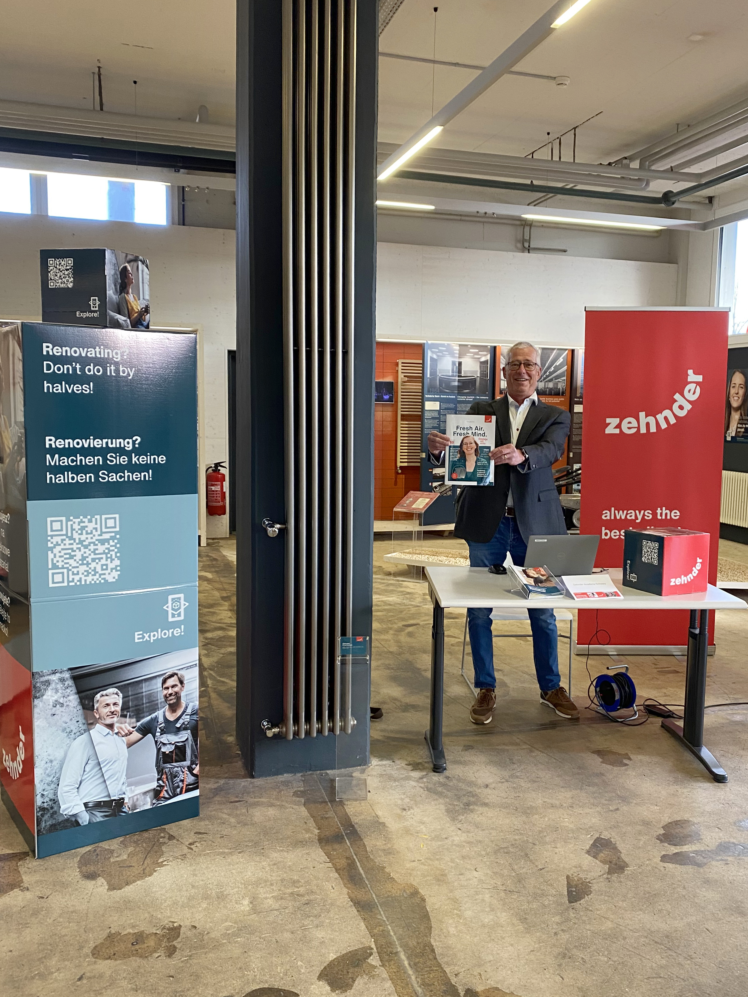 Besonders gefragt waren die geführten Rundgänge durch die Zehnder Academy, darunter eine zweisprachige Führung. Die Besucher erhielten spannende Einblicke in das moderne Trainingsumfeld «ComfoLiving», eine vollständig nachgebildete Wohnung mit modernster Lüftungstechnologie. Bei «Wurst und Salat» und regem Austausch entstand eine lebendige Messeatmosphäre. Parallel bot der Handel in Aarau attraktive Aktionen, was viele Gäste dazu motivierte, beide Standorte zu besuchen.