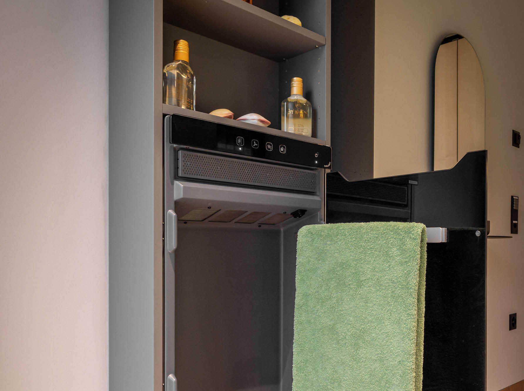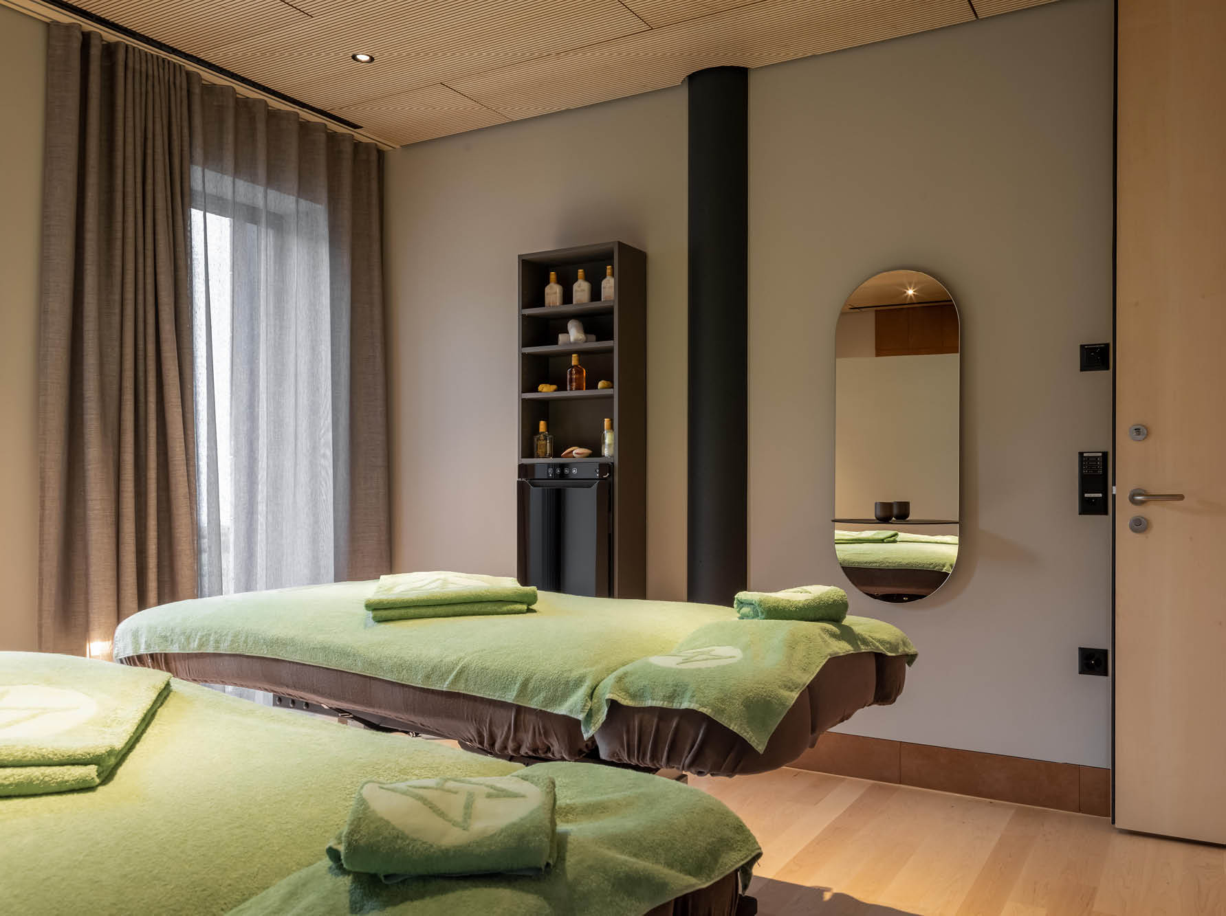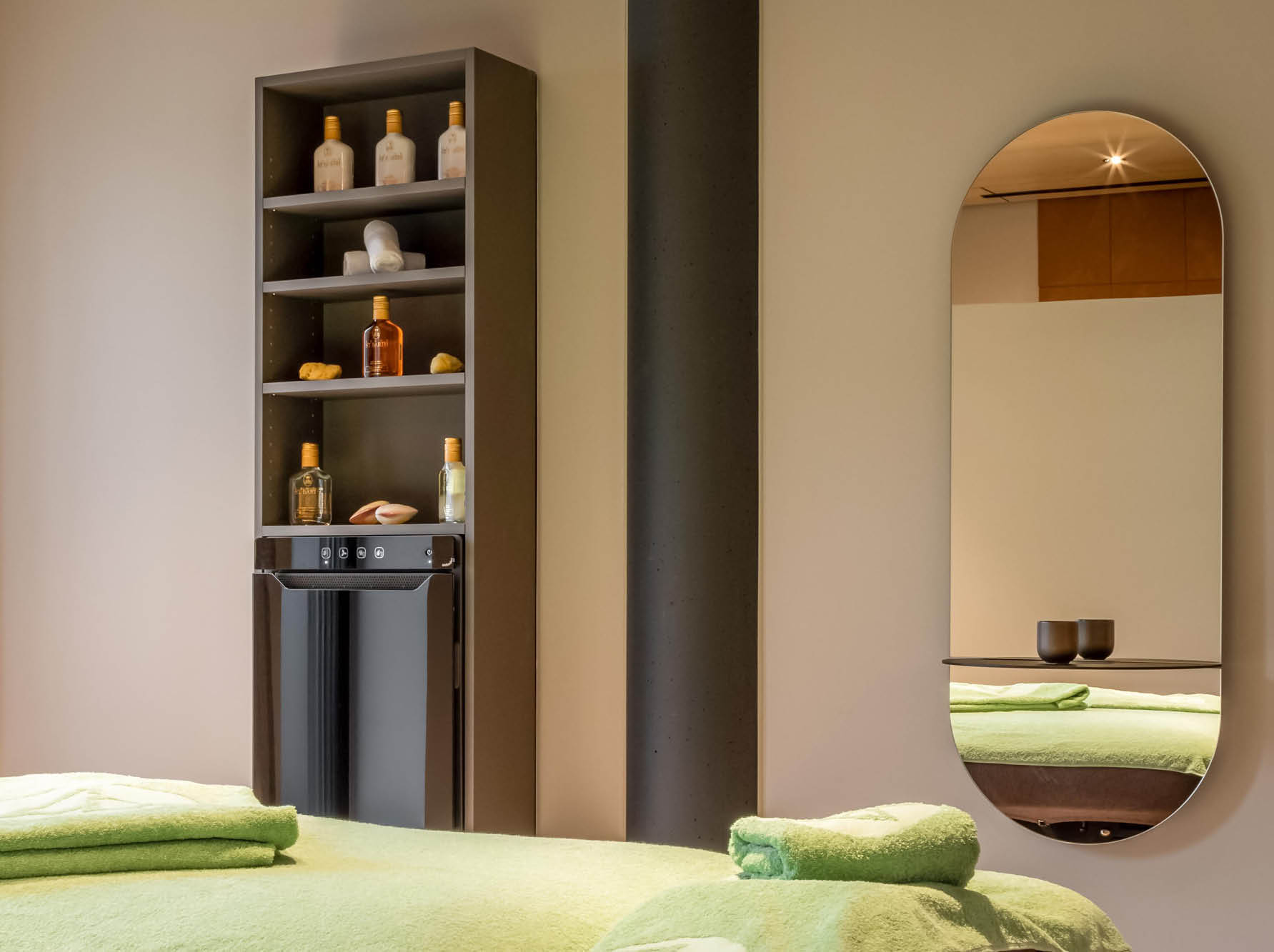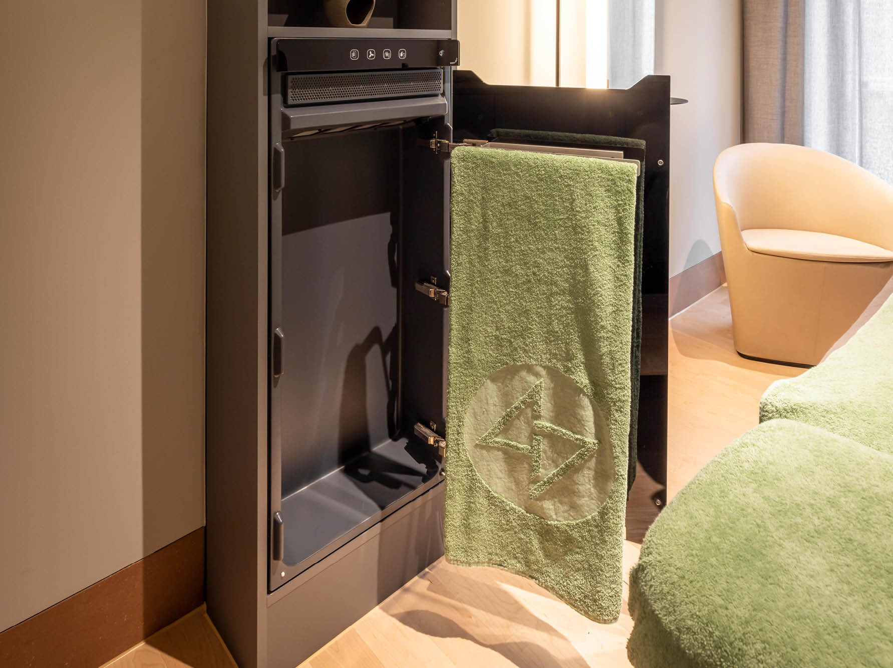 Für die kosmetischen Behandlungsräume im Spa-Bereich wurde ein Produkt gesucht, welches sowohl Handtücher vorwärmen und trocknen kann, sehr wenig Platz im Raum benötigt und auch nach dem Rohbau noch problemlos zu installieren war.