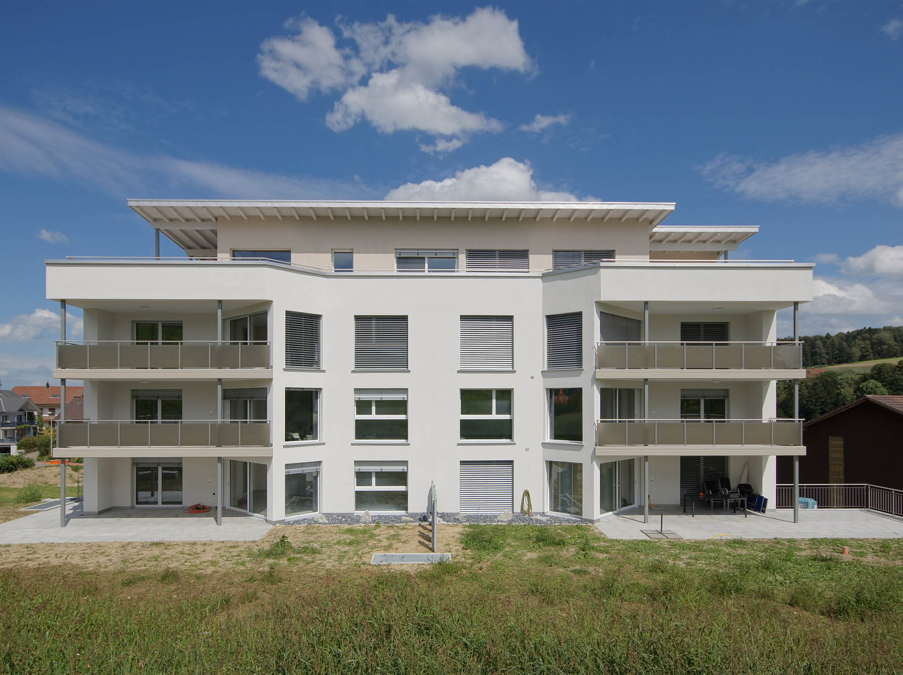 Im beschaulichen Dorf Roggliswil (LU) entstand von Mai 2013 bis Mitte Juni 2014 ein modernes Mehrfamilienhaus im Minergie-Standard: pro Etage zwei 4,5 Zimmer-Wohnungen zu je 120 m², im vierten Geschoss eine grosszügigen Attikawohnung mit 160 m² Wohnfläche.
