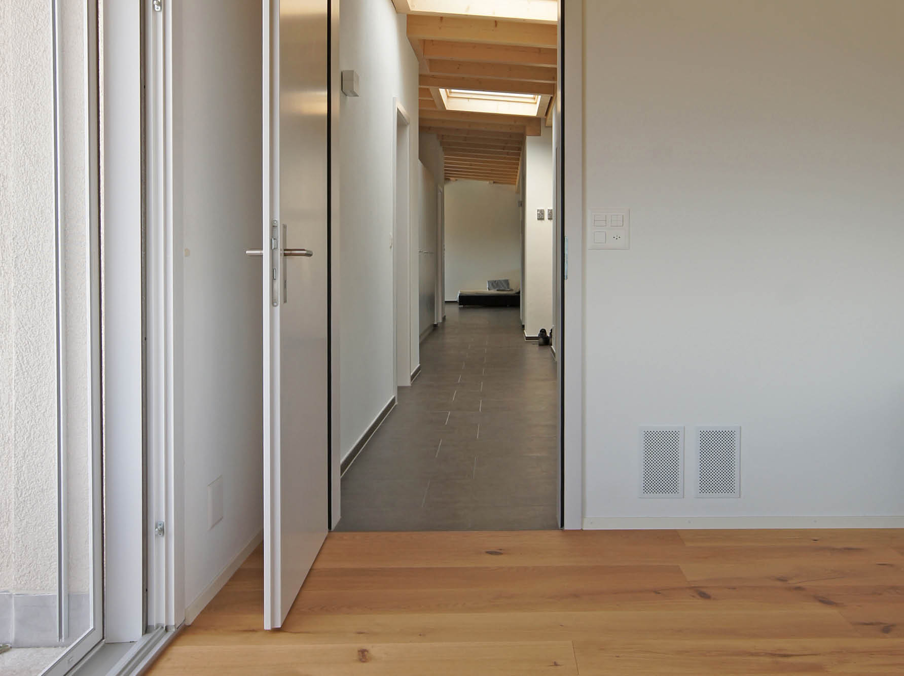 Jede der sieben Wohnungen im Mehrfamilienhaus Roggliswil wurde mit einem Zehnder ComfoAir SL 330 ausgestattet. Aufgrund seiner äusserst kompakten Abmessungen fand das Lüftungsgerät bequem und «unsichtbar» Platz in den Einbauschränken von Küche, Bad oder Terrasse. Jede Wohnung erhielt ein eigenes Luftleitungssystem, womit auch mögliche Schallrückkoppelungen über die verschiedenen Geschossebenen hinweg vermieden werden. Das leistungsstarke Lüftungsgerät verfügt über ein optimal abgestimmtes Schalldämpferpaket und garantiert damit einen nahezu geräuschlosen Betrieb.