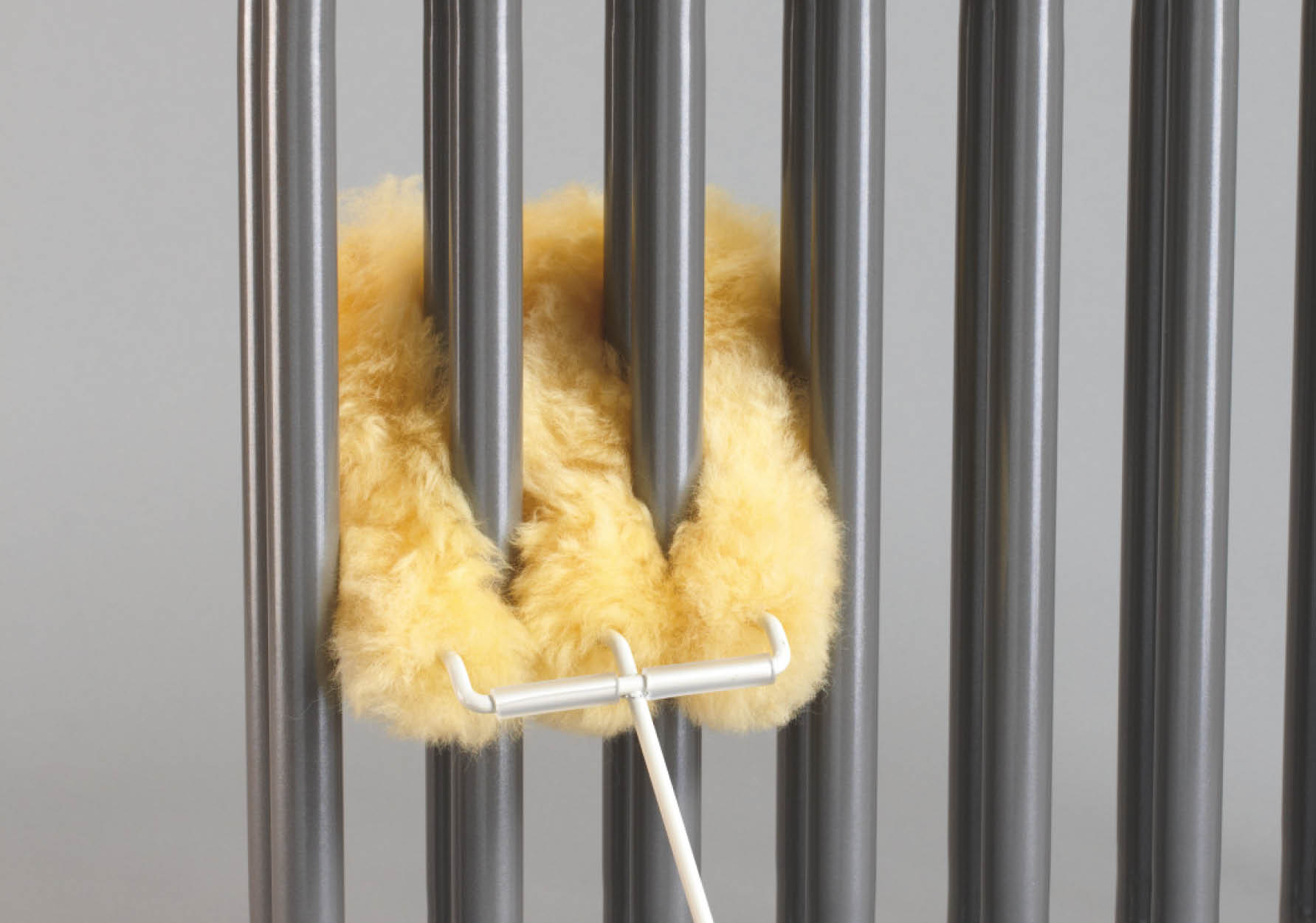 À trois doigts avec garniture en véritable peau de mouton pour un nettoyage optimal des tubes, des espaces entre les tubes et de tous les endroits difficiles d’accès