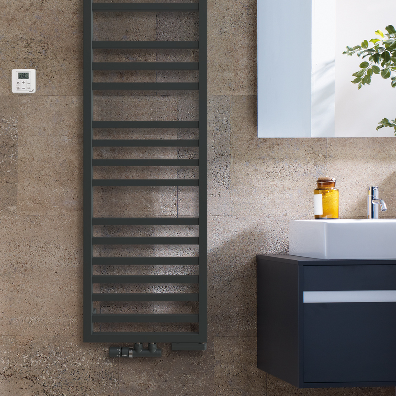 Une forme épurée, une présence sobre. Avec ses lignes angulaires, le modèle Zehnder Quaro ne s’impose pas et sait se faire discret. Il s’adapte à merveille à toutes les salles de bains modernes. Les écartements généreux entre les tubes sont