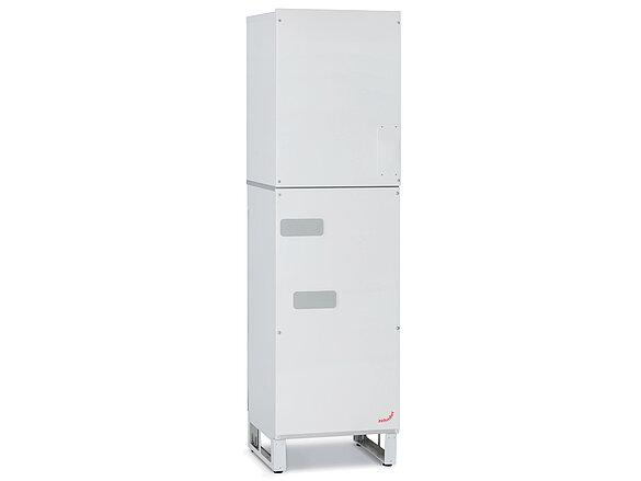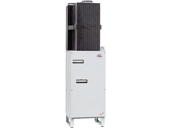 Les deux ventilateurs de pulsion et d’extraction sont pilotés par des moteurs à courant continu EC hautes performances. Leur commande indépendante permet de compenser les différences de pression dans le système de distribution d’air pulsé et d’air vicié. Ces ventilateurs particulièrement silencieux peuvent être ajustés par pas d’1% au débit volumétrique souhaité et garantissent par ailleurs moins de nuisances sonores. Les débits d’air des vitesses sélectionnables sont compris entre 50 m³/h et 220 m³/h.