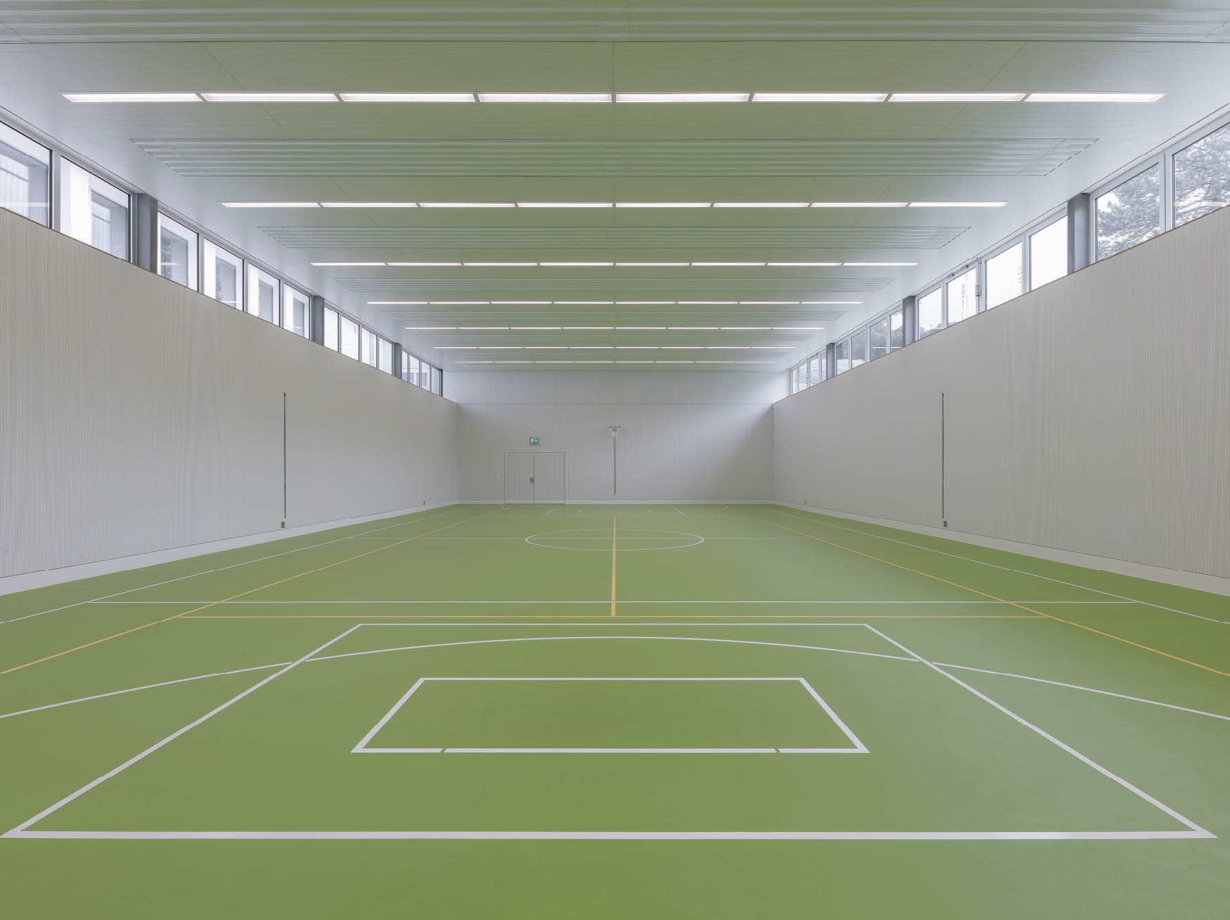 Pour le chauffage des deux salles de loisir, le maître d’ouvrage et l’architecte ont opté pour des panneaux rayonnants de plafond Zehnder. «Avec ce système de chauffage façade, la salle ne comporte aucun radiateur (facteur de risque de blessure). Nous avons également misé sur la flexibilité dans la répartition spatiale, avec par exemple des systèmes de rideaux ou le montage de parois intermédiaires», explique l’architecte Schönbächler.