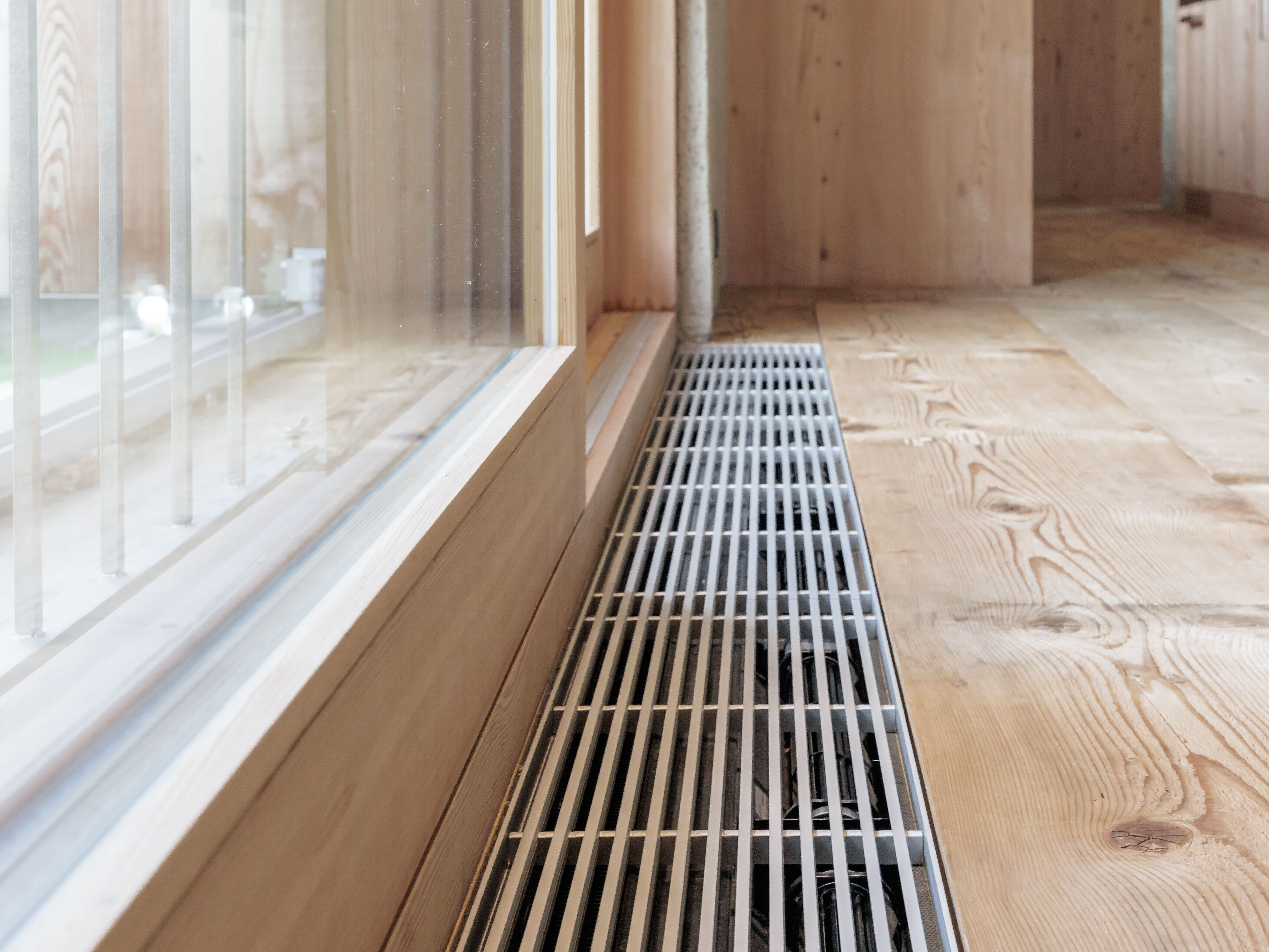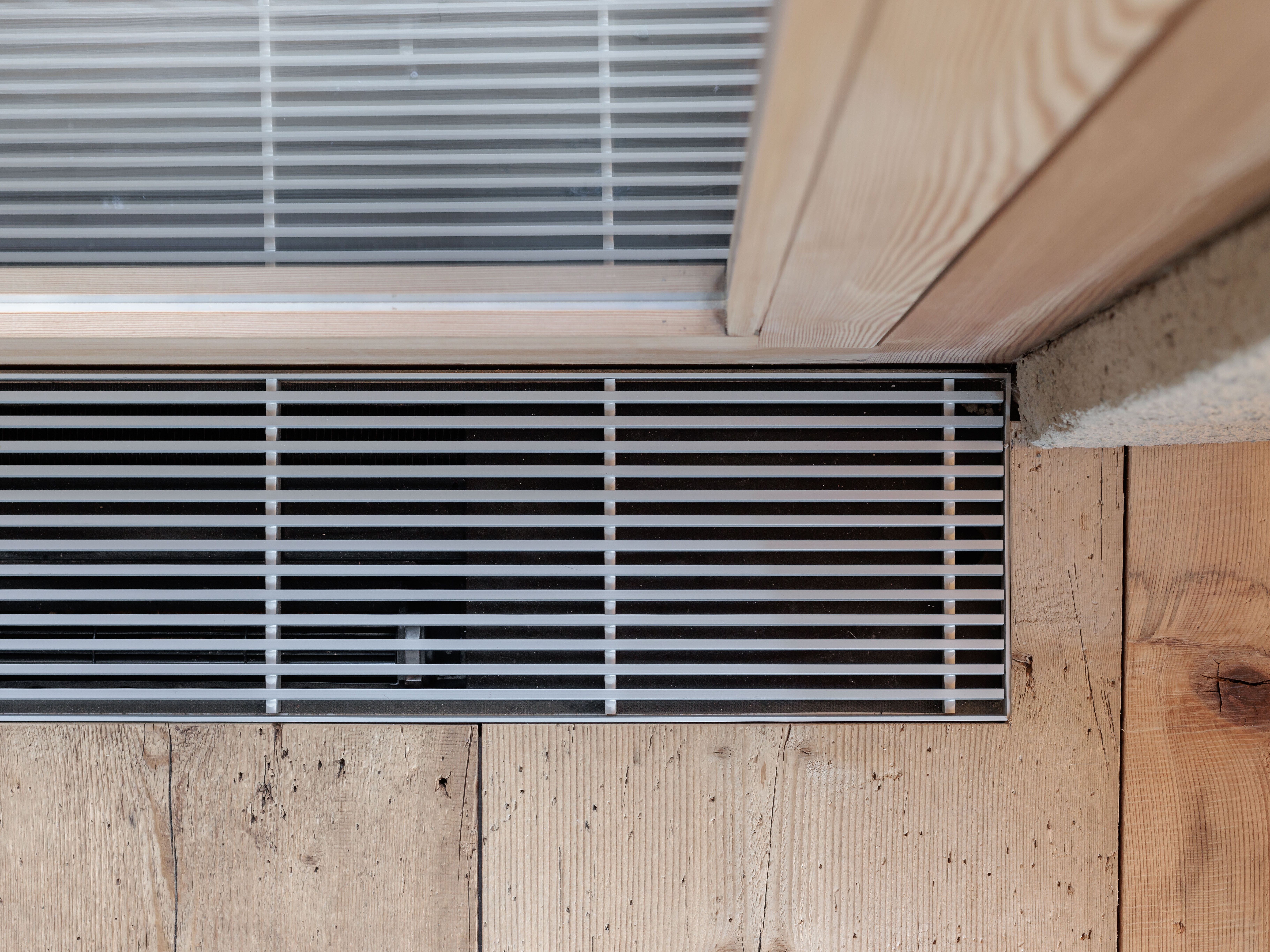 I sistemi di riscaldamento a pavimento reagiscono lentamente agli improvvisi influssi termici sulle ampie superficie in vetro. È qui che i convettori ad incasso Zehnder, in combinazione con i sistemi di riscaldamento a pavimento, fanno al caso vostro. Attenuano le differenze di temperatura rapidamente e secondo le necessità, nonostante il sistema di riscaldamento a bassa temperatura.