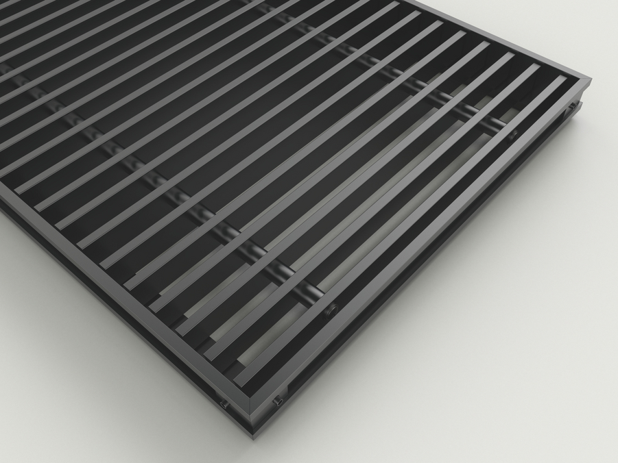 Le robuste griglie non solo nascondono la tecnologia, ma possono anche essere calpestate.