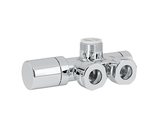 Sono disponibili vari set di valvole con corpo valvola e avvitatura ritorno, compresi 2 raccordi di riduzione da 1/2 pollici per corpi riscaldanti e dadi per raccordo sul lato uscita con la stessa finitura del corpo valvola.