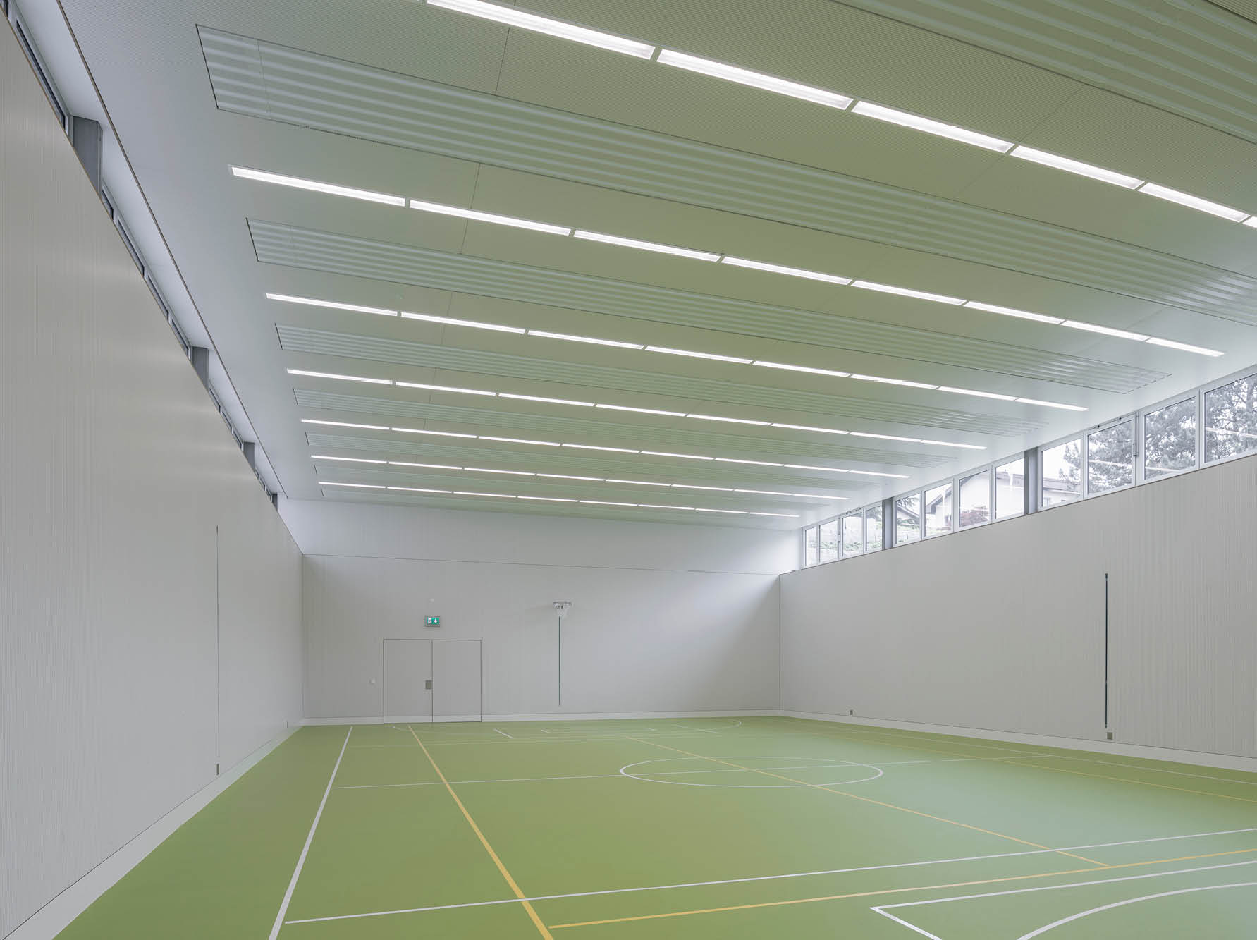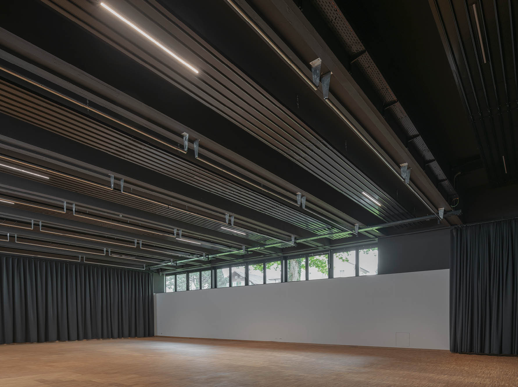 Per riscaldare i due padiglioni, committente e architetto hanno scelto i pannelli radianti a soffitto Zehnder. «Questo sistema di riscaldamento della superficie frontale elimina i radiatori che rappresentano una fonte di pericolo. Anche la flessibilità nella suddivisione dell’ambiente, ad esempio con sistemi di tende o l’installazione di pareti divisorie, era un aspetto rilevante», spiega l’architetto Schönbächler.