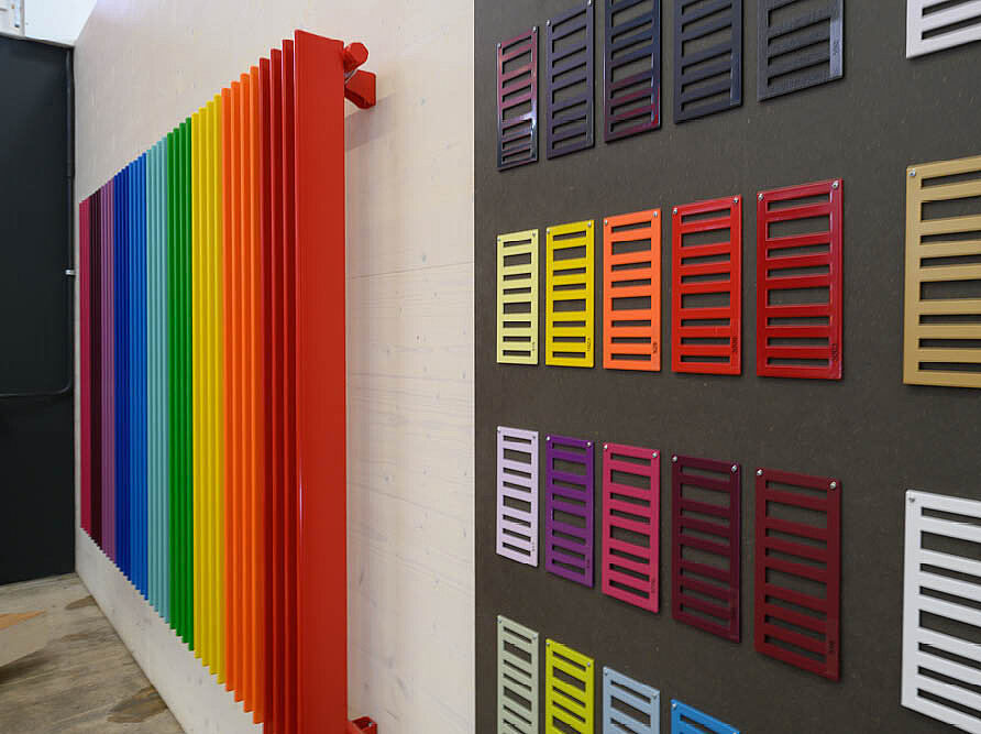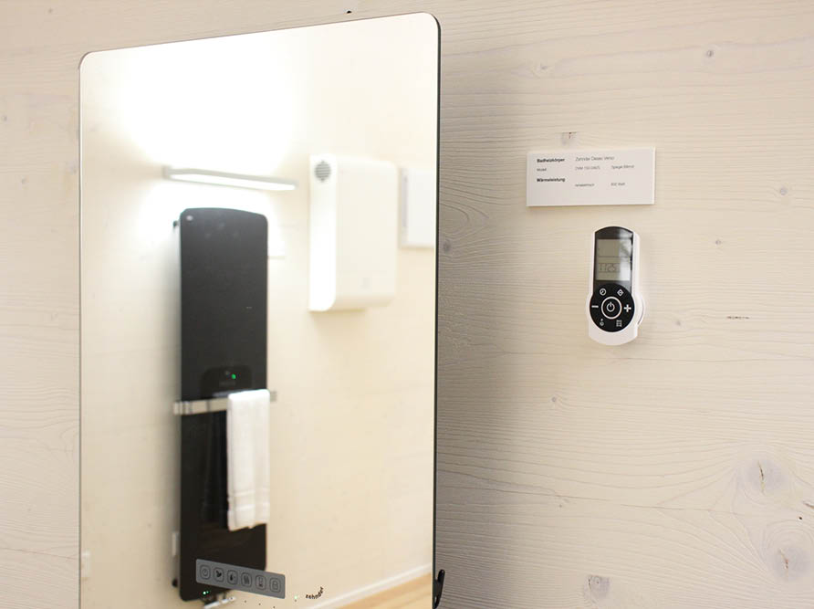 Nell’area di accoglienza dell’Academy, le ultime innovazioni di Zehnder sono presentate insieme alla storia dell’azienda. I modelli di corpi riscaldanti Zehnder e il loro mondo cromatico con superfici diverse sono illustrati nel «RAD-Corner». Durante il tour dell’Academy, i visitatori possono sperimentare la tecnologia dei corpi riscaldanti con temi quali il riscaldamento, il raffreddamento, l’irraggiamento, la convezione, le applicazioni e la storia. Ad esempio, vengono presentati i più recenti pannelli radianti a soffitto Zenhder su un soffitto o una parete di sistema dove è possibile simulare il bilanciamento della pressione idraulica sui corpi riscaldanti. Ci sono anche alcuni corpi riscaldanti da bagno, ma l’esposizione complessiva dei pezzi di design si trova nell’edificio principale adiacente.