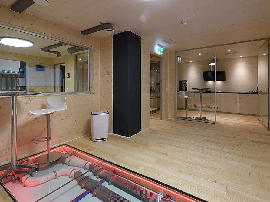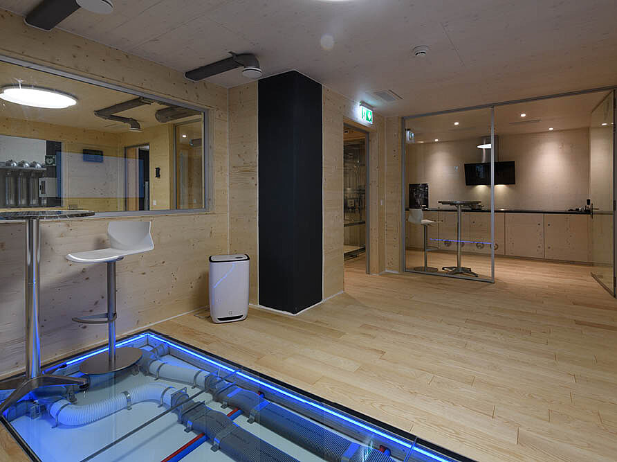 Nel padiglione della Zehnder Academy è stato ricreato un appartamento di 2,5 stanze, dotato di un’ampia gamma di tecnologie di ventilazione. In questi locali, chiamati «ComfoLiving», si possono sperimentare dal vivo e confrontare gli attuali sistemi di ventilazione, dai semplici sistemi ad aria aspirata fino all’economica ventilazione di base per ambienti (GWL) e alla ventilazione confort per ambienti. La nuova infrastruttura di apprendimento consente di fare esperienza pratica e di confrontare i sistemi di ventilazione. «Luce e nebbia visualizzano il funzionamento dei vari sistemi di ventilazione e permettono di sperimentarli da vicino. Nel corso del processo, i rispettivi vantaggi e svantaggi di ogni soluzione diventano estremamente visibili», spiega Thorsten Erichsen.