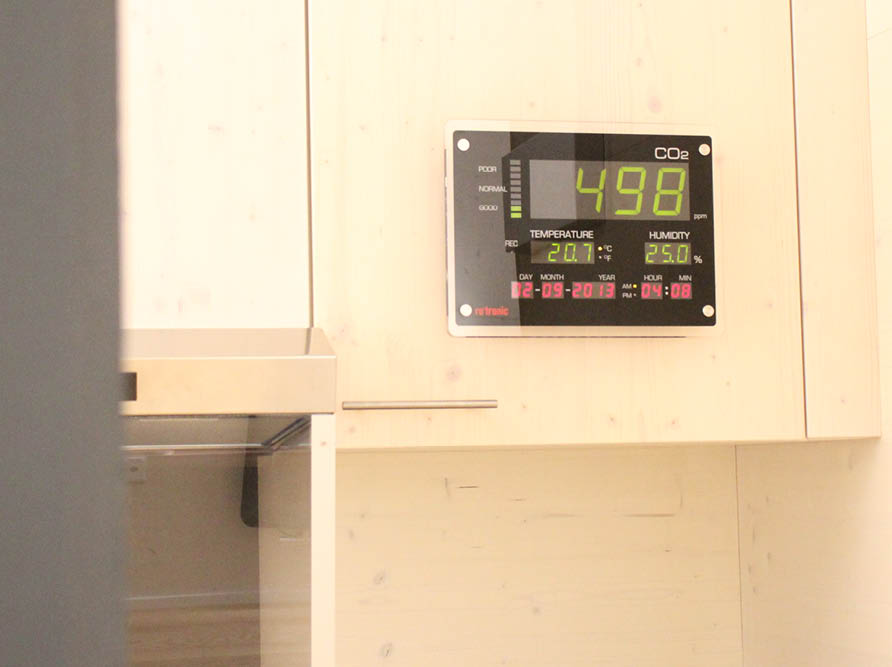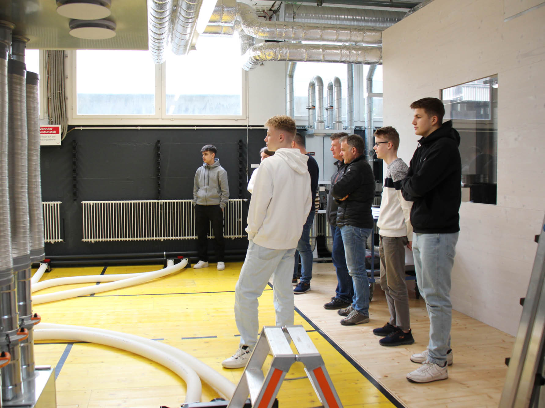 I partecipanti al corso vivono un’esperienza di apprendimento completamente nuova grazie all’infrastruttura per il clima ambientale «ComfoClimate»: i cosiddetti ambienti climatici offrono un’esperienza pratica del clima ambientale e dell’apprendimento «omnisensioriale», come l’interazione di corpi riscaldanti, ventilazione comfort, ventilazione in cascata, stufa a legna e cappa aspirante. Allo stesso modo, è possibile sperimentare la diversa circolazione dell’aria delle superfici riscaldate e raffreddate per irraggiamento o convezione. Utilizzando gli apparecchi di ventilazione Zehnder ComfoAir Q con tecnologia di scambiatore di calore a entalpia è possibile per la prima volta visualizzare il trasferimento di umidità tra due zone di clima ambientale. I visitatori interessati possono quindi sperimentare e toccare con mano le diverse tecnologie per il clima ambientale nell’area «ComfoClimate».