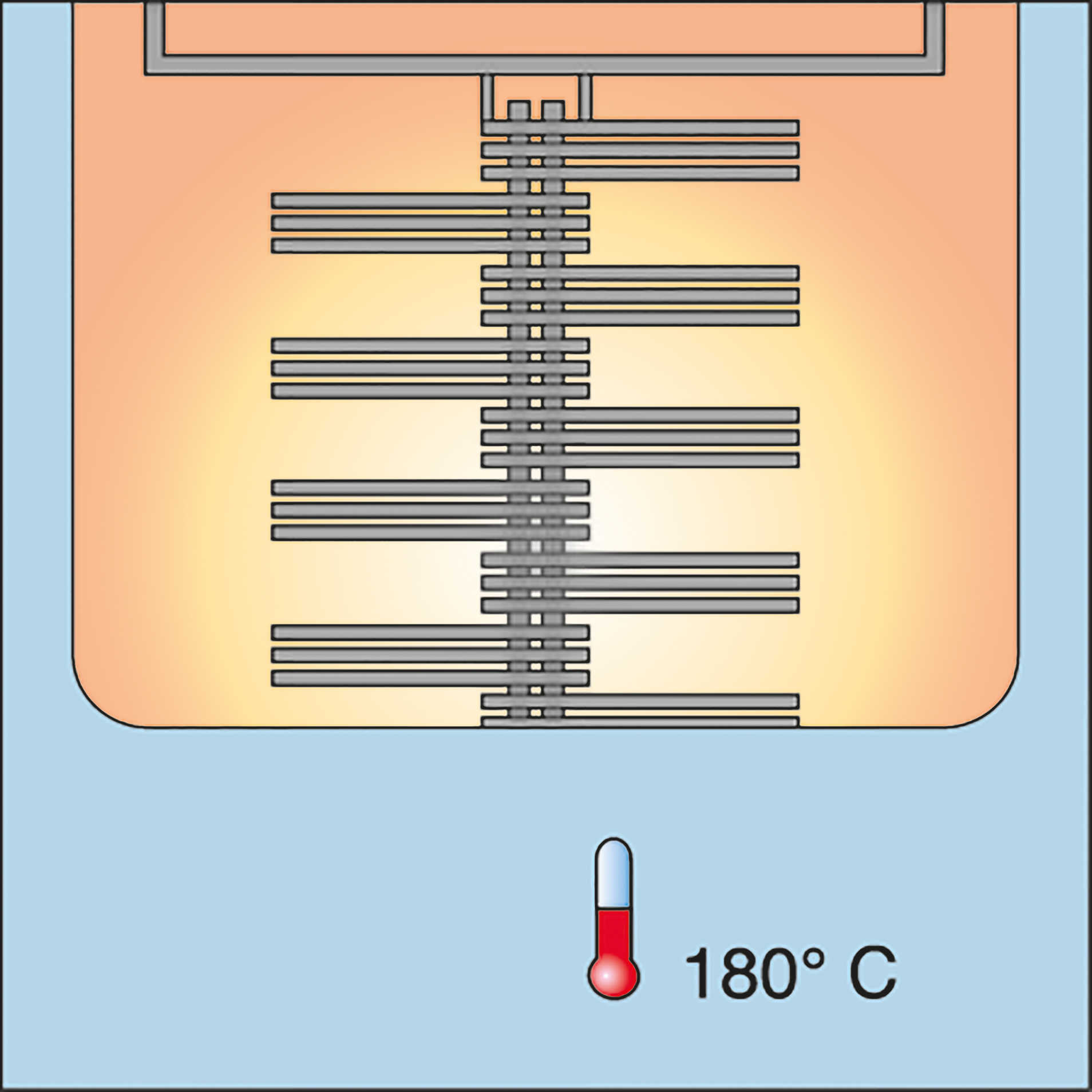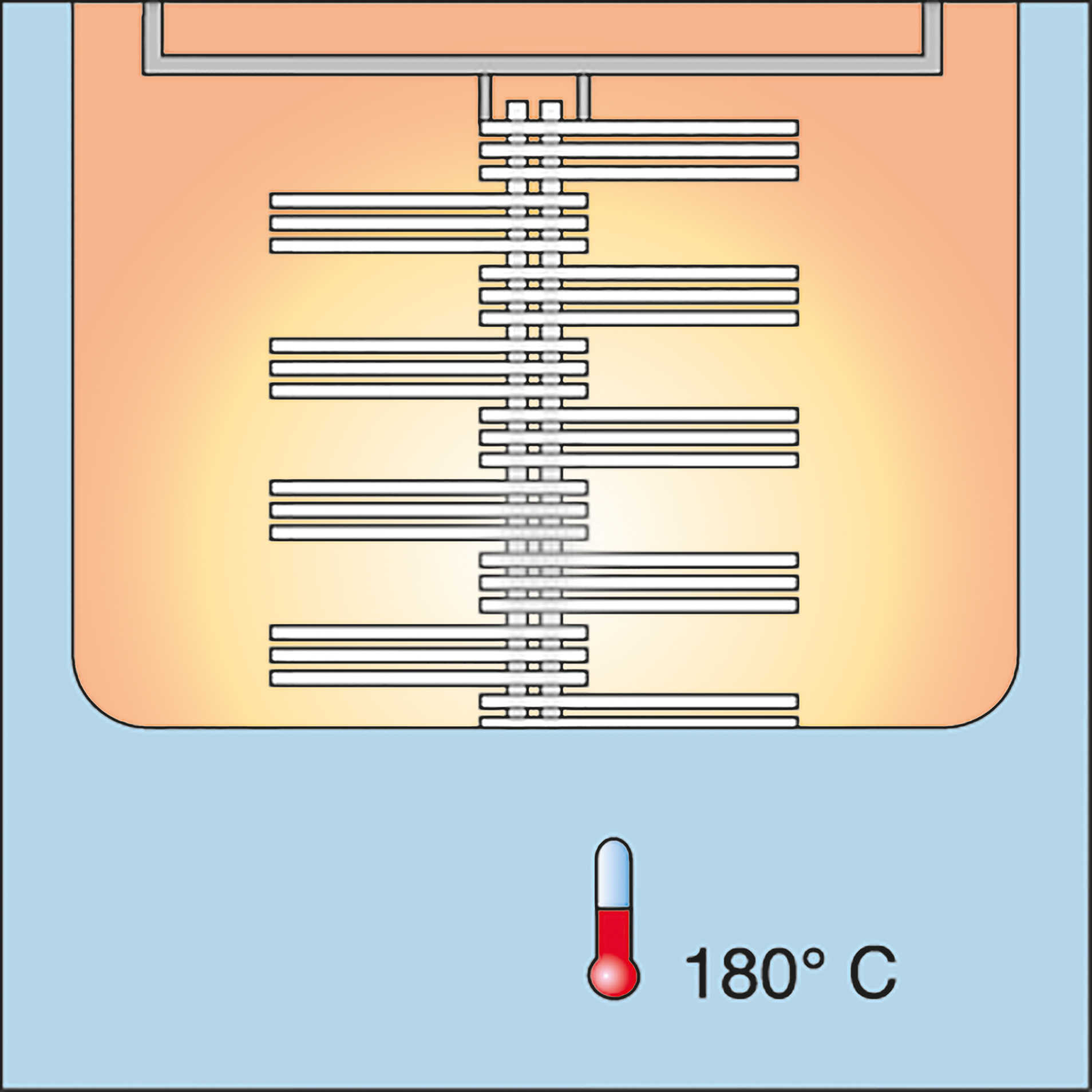 Der Heizkörper erhält eine Nickel-Schicht mittels einer Elektrolyse.