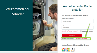 Endverbraucher-Konten sind für gewerbliche oder private Nutzer, die ein Zehnder Gerät besitzen oder nutzen.