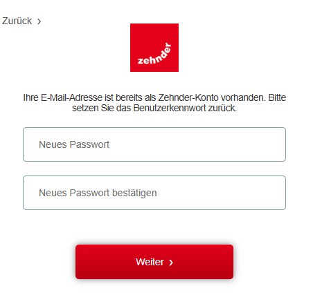 Falls Sie noch kein Zehnder Nutzerkonto besitzen, können Sie in wenigen Schritten ein neues Konto anlegen.